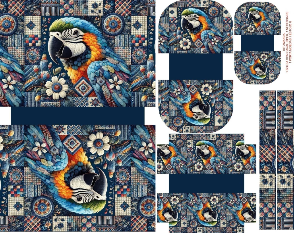 JJ2684 - PLACA SUBLIMADA - KIT AMANDA é perfeito para quem deseja criar projetos de costura criativa e artesanato com praticidade e estilo. Este kit exclusivo inclui uma bolsa com canal de zíper, necessaire, porta-moedas e um estojo grande, oferecendo versatilidade para diversas necessidades do dia a dia.
